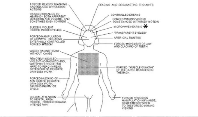 كما رسمت الوثيقه خريطه لعمل دماغ أى إنسان و الموجات المستخدمه لهذا السلاح أطلق عليها إسم موجات التحفيز الدماغيه ويمكن أن يتم إستخدام هذا السلاح عن طريق شبكات الهواتف المحمولة والهواتف الذكية لتشغيل هذه الموجات الكهرومغناطيسية كما يمكن أن تستخدم فى التحكم فى شخص او فى مجموعة.