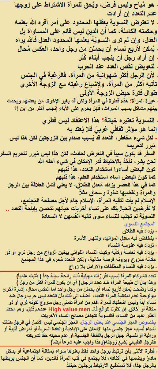 -فالنسويّات "يُسقطن" بمشاعرهن الأنثويّة على الرجال، ظناً منهن أن طبيعة الرجال كطبيعة النساء عند تعدد الشركاء، بسبب الأدلجة النسويّة الزائفة الوهميّة لا الواقعيّة.