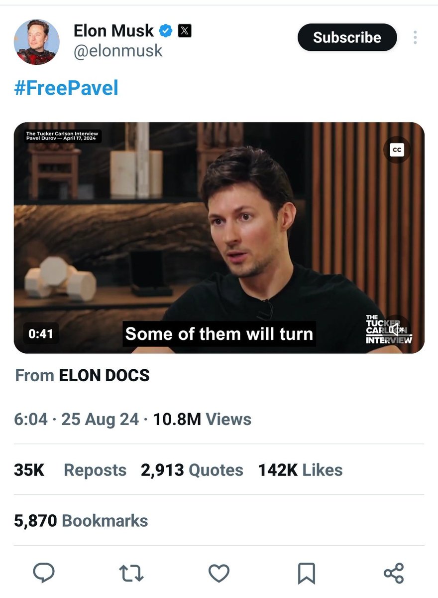 هذا وقد ضجت مواقع التواصل الاجتماعي بالمطالبة باطلاق سراح دوروف #PavelDurov فورا وانه ضحية للظلم وحماية #حرية_التعبير.