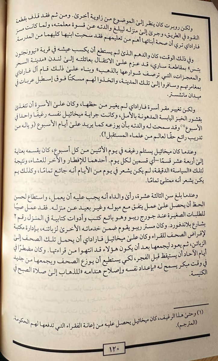 الخادم الفقير ذو الـ 15 عام الذي ارتقى إلى مرتبة عَالِم كيميائي عظيم، والذي ترشح بفضل نبوغه لرئاسة الجمعية الملكية ولكنه رفض ذلك رغبة منه أن يظل حتى النهاية فاراداي البسيط.