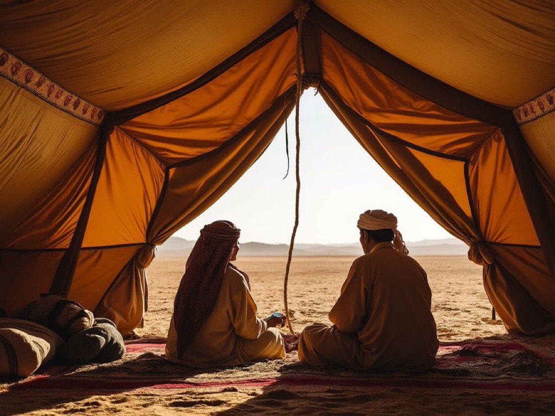 لمعت في عقل شيخ القرية فكرة شيطانية لينفرد بزوجة الرجل فأرسله مع بعض رجال القرية ليتفقدوا ضيعة بينهم وبينها مسيرة ثلاثة أيام في الذهاب ومثلهم للعودة وبعد أن سافر الزوج مع الرجال أنتظر شيخ القرية ليأتي الليل وتسلل بيت الرجل لينفرد بزوجته ودخل البيت ولكن الزوجة شعرت به فقالت:- من بالمنزل