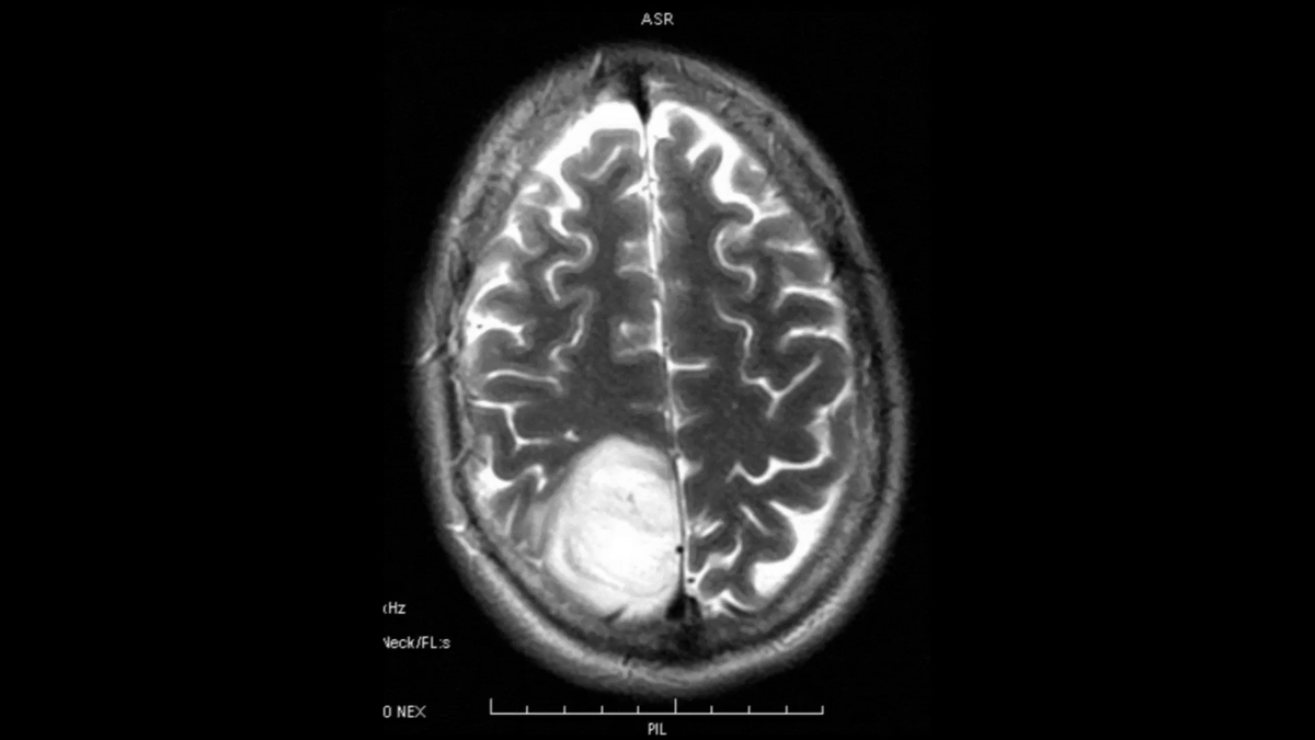 النتائج كشفت عن وجود كتلة في الفص الجبهي الخلفي الأيسر بالقرب من الجافية، وهي تتوافق مع ورم سحائي، وهو نوع من أورام الدماغ.