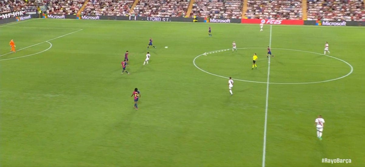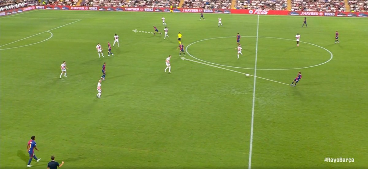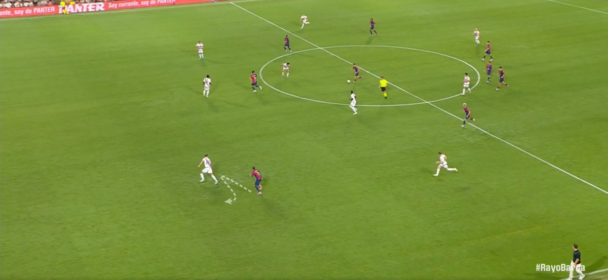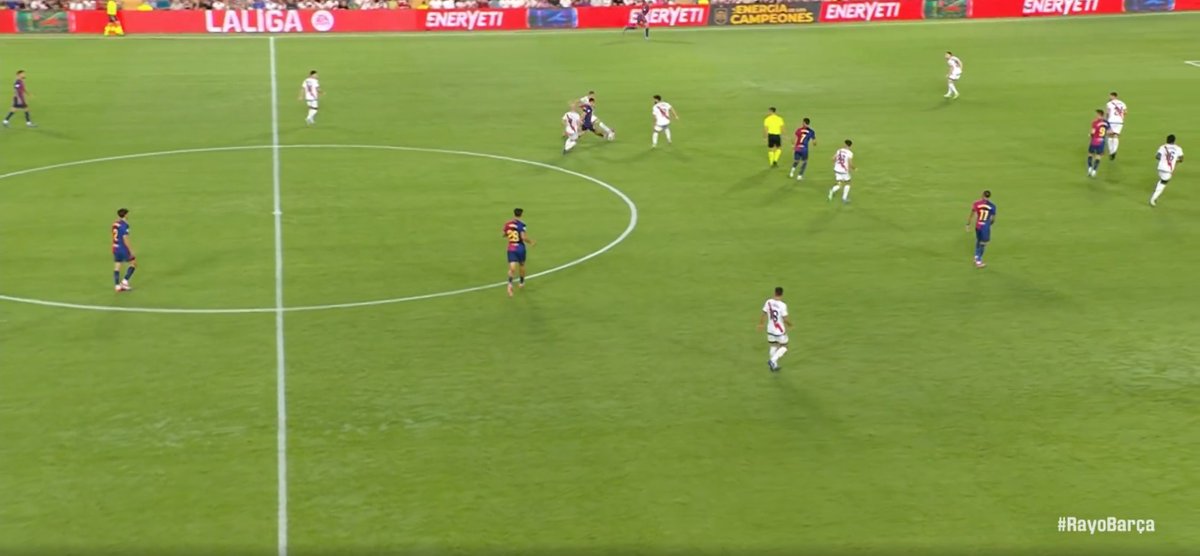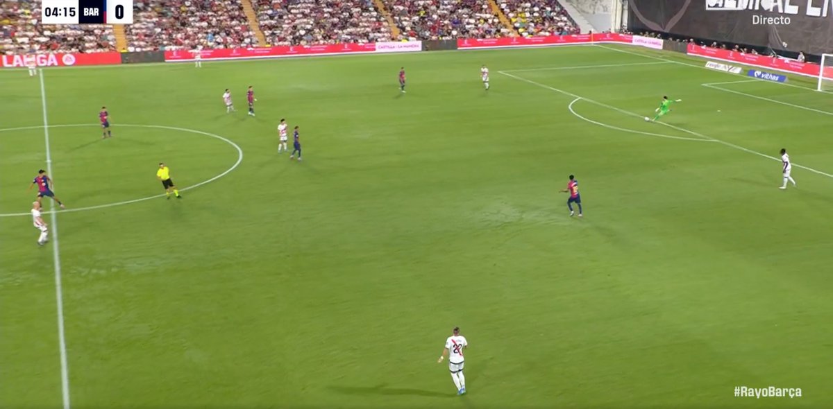 El Rayo ya no llegó a incomodar la construcción del Barça. Centrales con apoyo de Bernal, interiores de gran comprensión y finura, y muy importante: Raphinha cerca de Lewy para fijar a los defensores y dar tiempo y espacio a los peloteros. El juego se asentó y todo cambió