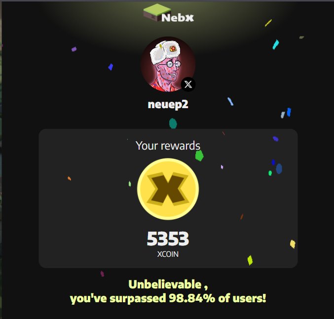 Unbelievable I've surpassed 98,84% of X users! @NebX_team