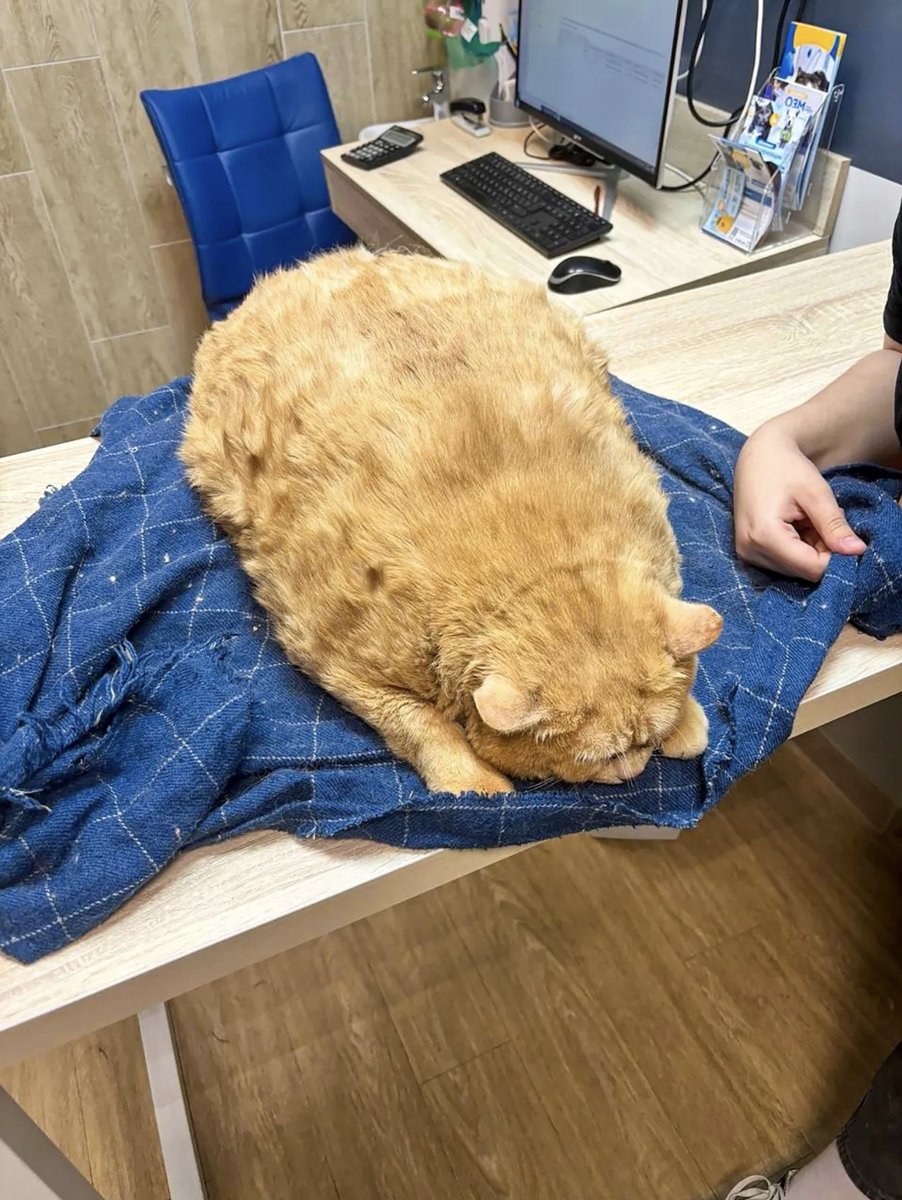 قط ضخم يزن بقدر وزن طفل صغير [17كيلو] وُجد يعيش في قبو مستشفى في روسيا..