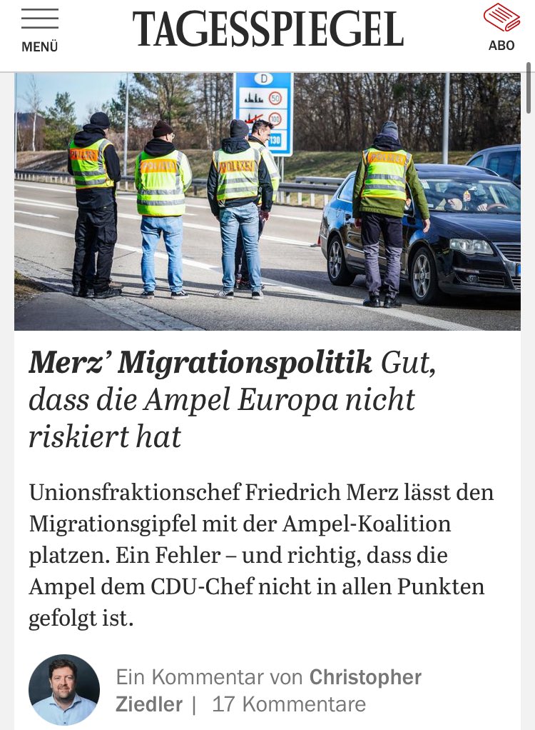 Heute sagten mir noch Christdemokraten: bei aller Skepsis, Merz habe ja Erfolge mit seinem Kurs. Die ersten Reaktionen von außerhalb heute Abend klingen anders, zwischen klarer Kritik an ihm und der Darstellung von Chaos, an dem er und die CDU mindestens auch Schuld tragen.
