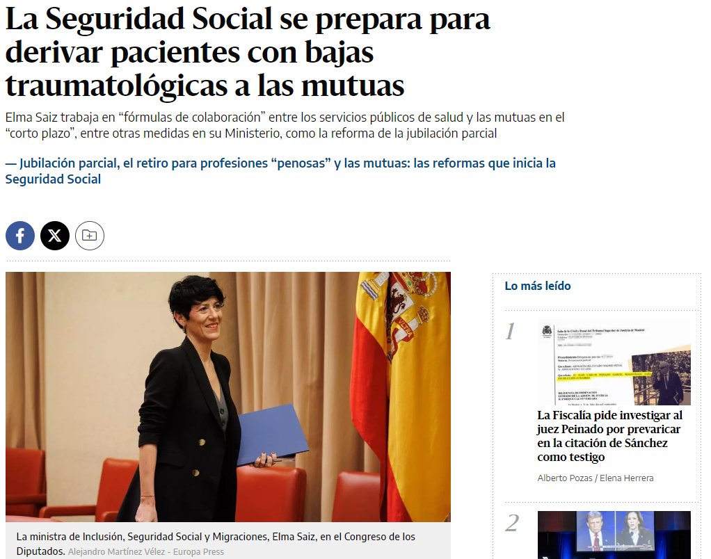 el INSS y el resto del equipo esto es una fantasmada– la Seguridad Social derivará las bajas por traumatismos a las mutuas, que cada vez cobran más protagonismo. La «jubilación activa» y el incremento del protagonismo de las mutuas –un atentado contra la salud pública–