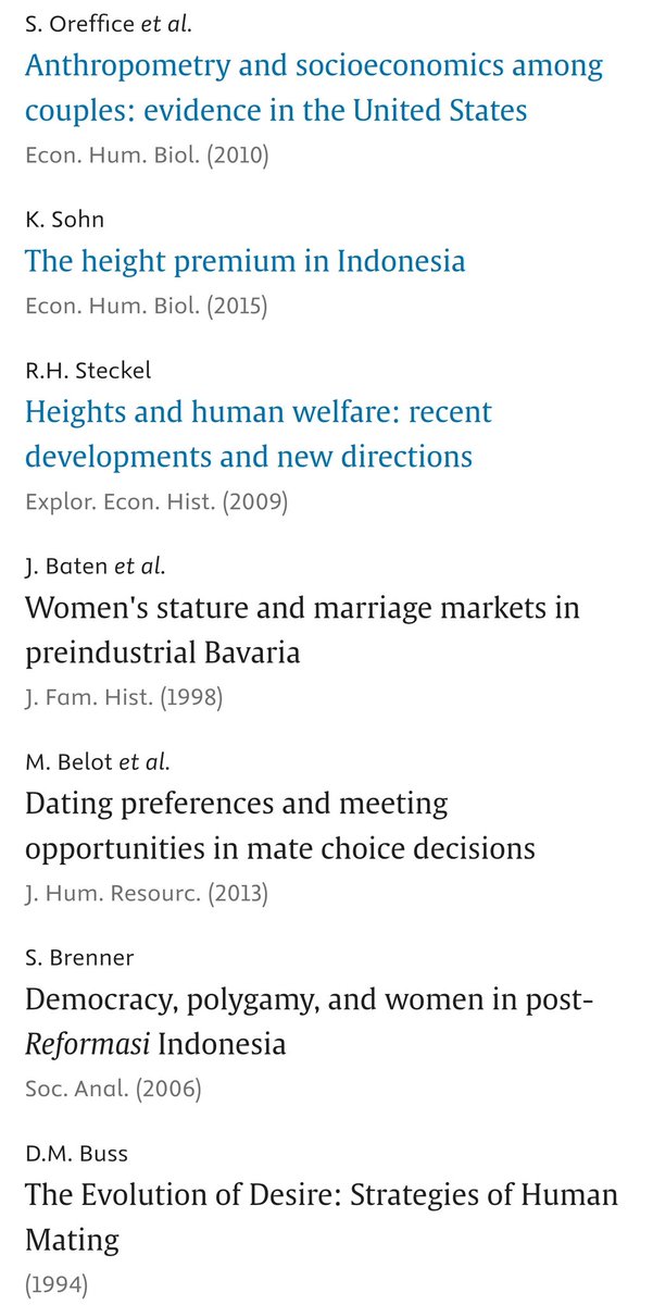 ويشير هذا الفارق إلى أن النساء في إندونيسيا يبحثن في المقام الأول عن الرجال طوال القامة لقدرتهم على توفير الموارد. وهذا يتفق مع أهمية عملية الاختيار التطوري الذي يتجذر في النساء وقد يعكس أيضاً أهمية الحيلة في البلدان النامية.