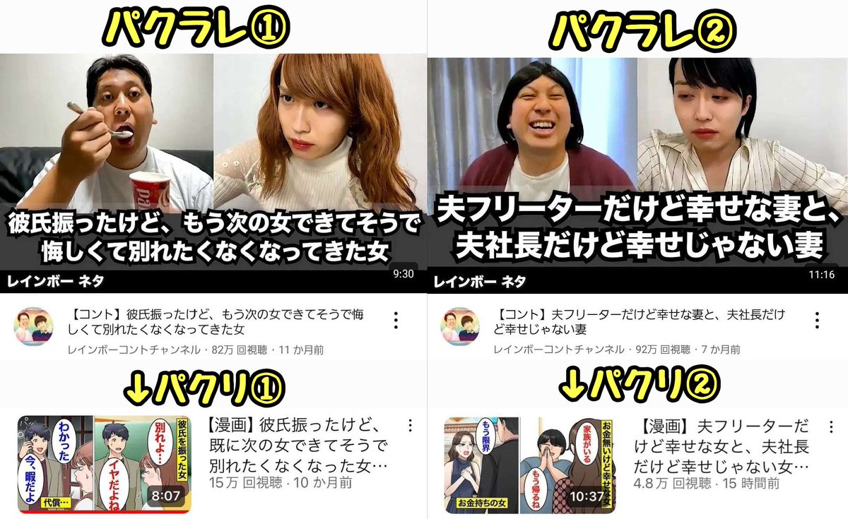 【悲報】おもしろ体験をマンガ風動画にするYouTubeチャンネル「オンナのソノ(チャンネル登録者18万人)」さん、お笑い芸人のネタを丸パクリで荒稼ぎか
