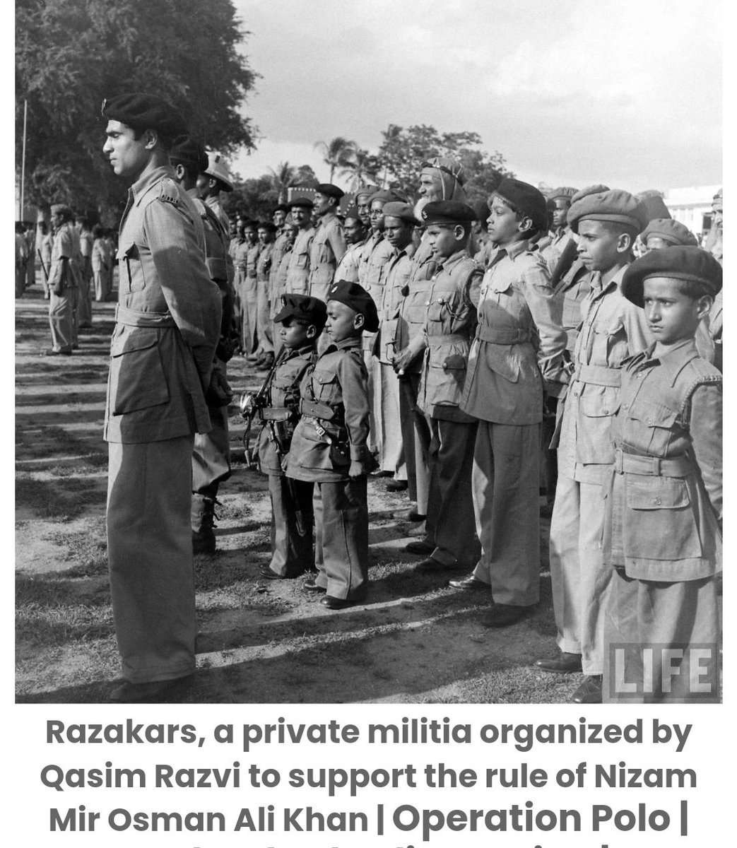 २) 'इत्तेहादुल मुसलमीन' या रझाकारांच्या संघटनेचा प्रमुख कासिम रझवी 👇 याने रझाकारांची संख्या (शेवटीशेवटी ~ २० हजार ) व बळ वाढवून गावोगावी अत्याचार करण्यास सुरुवात केली. राजकीय विरोधकांबरोबरच गोरगरिबांच्या हत्या होऊ लागल्या.संस्थानातील गैरमुस्लिम जनतेत दहशत निर्माण केली जाऊ लागली. रस्त्यारस्त्यात हत्या,स्त्रियांवर अत्याचार होऊ लागले.घरे लुटली जाऊ लागली.ह्याचा सगळ्यात मोठा फटका अंबाजोगाई आणि आसपासच्या भागाला बसला.