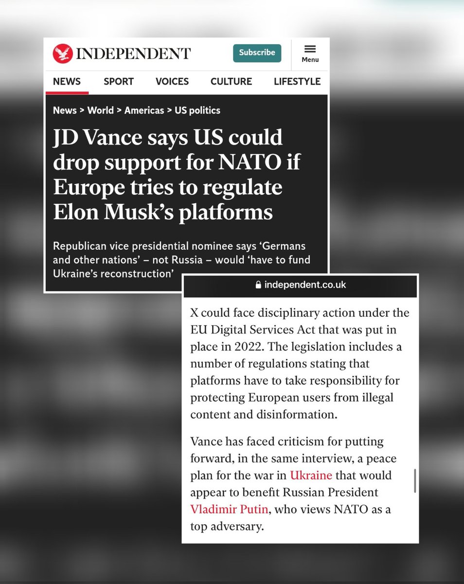 JD Vance is blackmailing the EU and NATO for Elons and MAGAs version of free speech ...