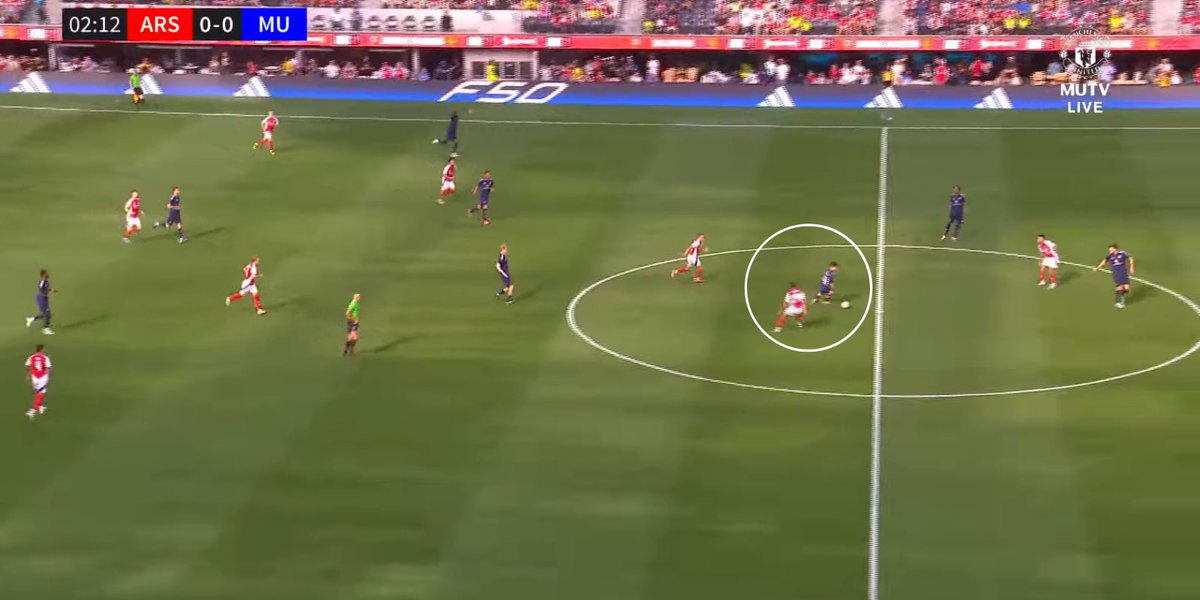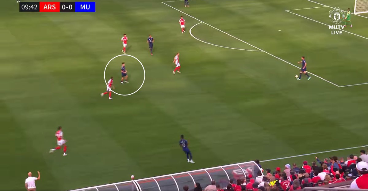 During pre-season, he showcased his impressive physical and technical tools against several senior players, particular during the first half of a clash against Arsenal. One of his standout attributes was his press-resistance against an aggressive Arsenal press.