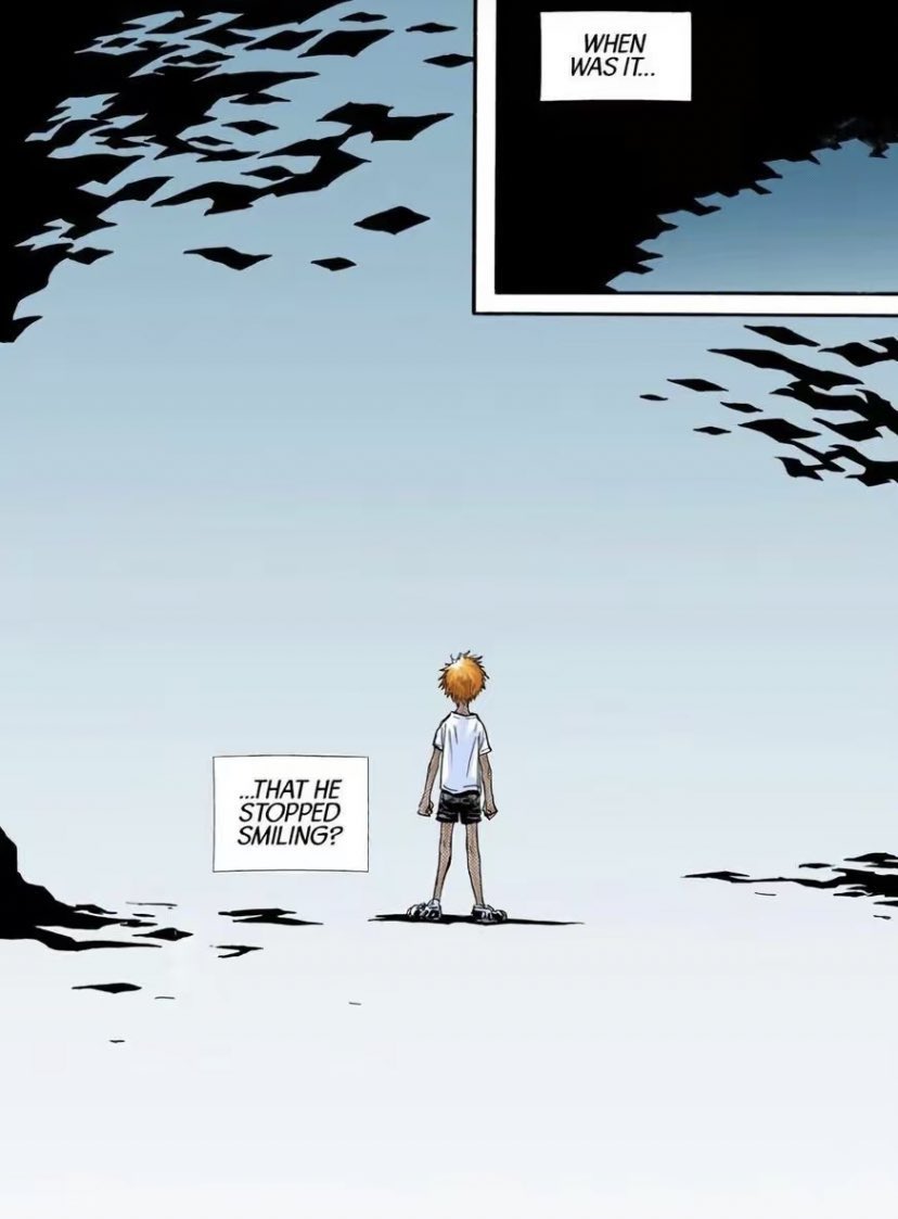 ايتشيغو يعيش صرعات داخلية في حياته و دائمًا ما يبث فكرة العدامية بين لماذا انا موجود و لماذا كان يجب ان يموت بسببي ( ماساكي ) ..