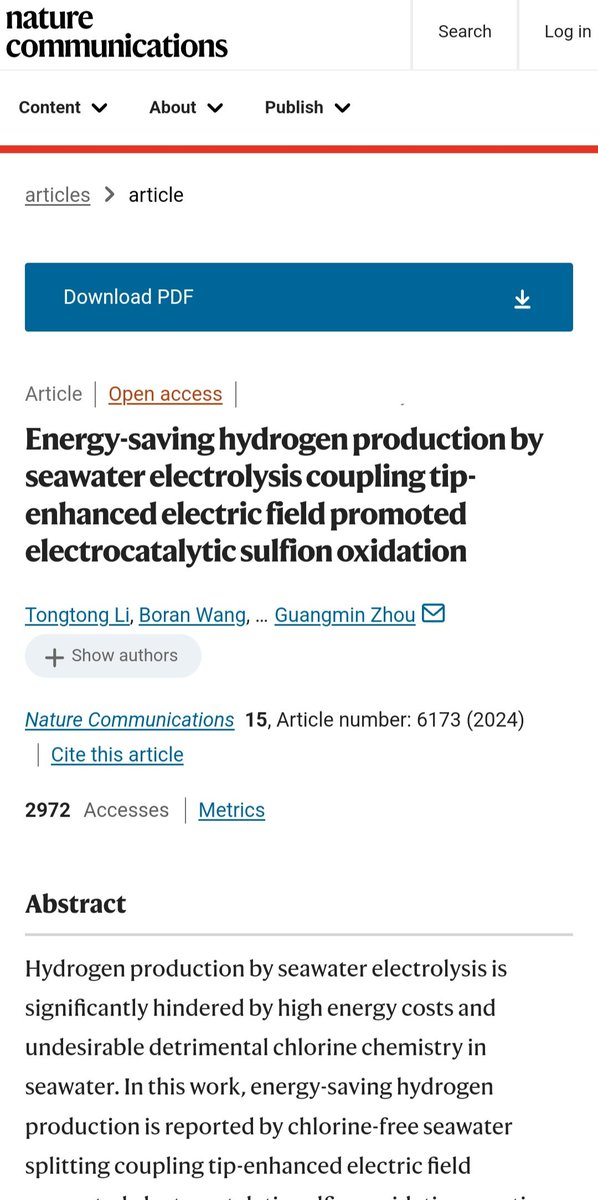 لقد استطعنا صنع الهيدروجين من مياه البحر دون توليد غاز #الكلور التآكلي والسام.