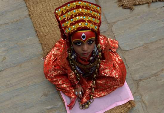 فى طقوس دينية غريبة للحماية من الشر فى كاتماندو فى نيبال، يتم جمع الفتيات الصغيرات تحت سن الـ9 من عمرهم لعبادتهم حيث تم اختيار 500 فتاة وتزينهن بالمكياج والملابس الملونة والاكسسوارات الذهبية