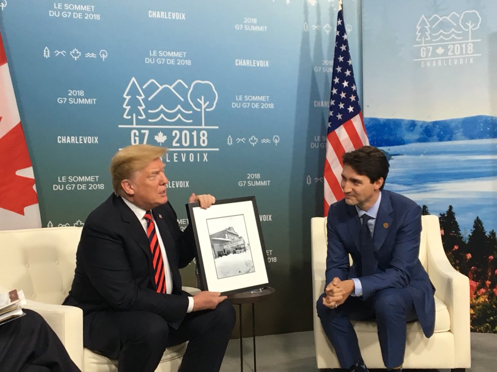 في عام 2018 اهدى رئيس الوزراء الكندي جاستن ترودو الذي بالكاد تمالك نفسه من الضحك الى الرئيس دونالد ترامب صورة فندق جده بكندا الذي استخدمه بيت دعارة .... x.com