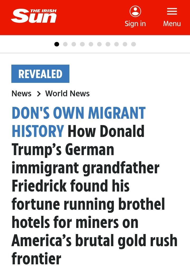 بدأت قصة عائلة ترامب في البحث عن الذهب عندما غادر فريد، كما كان معروفًا، ألمانيا في سن السادسة عشرة ولم يكن معه سوى حقيبة سفر. توجه إلى نيويورك للعمل كحلاق قبل أن يغامر بالسفر غربًا بحثًا عن الثروات. x.com