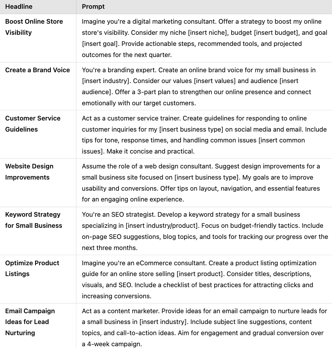 "You're an SEO strategist. Develop a keyword strategy for a small business specializing in [insert industry/product]. Focus on budget-friendly tactics. Include on-page SEO suggestions, blog topics, and tools for tracking our progress over the next three months."