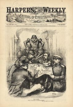 كاريكاتير شهير من عام 1896 يصوّر السلطان العثماني، قلقًا وهو يتفحص وثيقة تُدعى “إعادة تنظيم الإمبراطورية العثمانية كشركة تركيا المحدودة” بإدارة روسيا، وفرنسا، وإنجلترا.