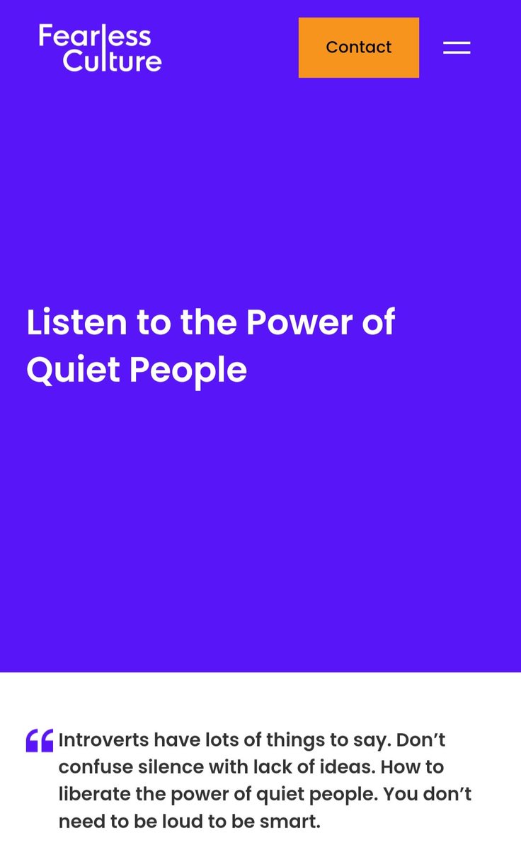 ومن خلال احتضان زملائنا الأكثر هدوءًا، نطلق العنان للإمكانات غير المستغلة ونساهم بشكل كبير في فرقنا ومنظماتنا. وتأكد بأن الصامتون سيكونون صرحاء عندما يكون لديهم شيء ذو قيمة لإضافته.
