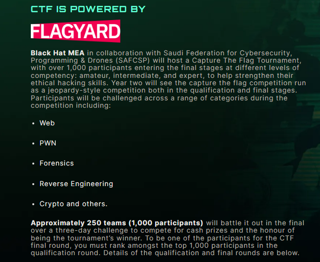 فعالية الكابتشر ذا فلاق او #CTF السنوية المقامة في #بلاك_هات24