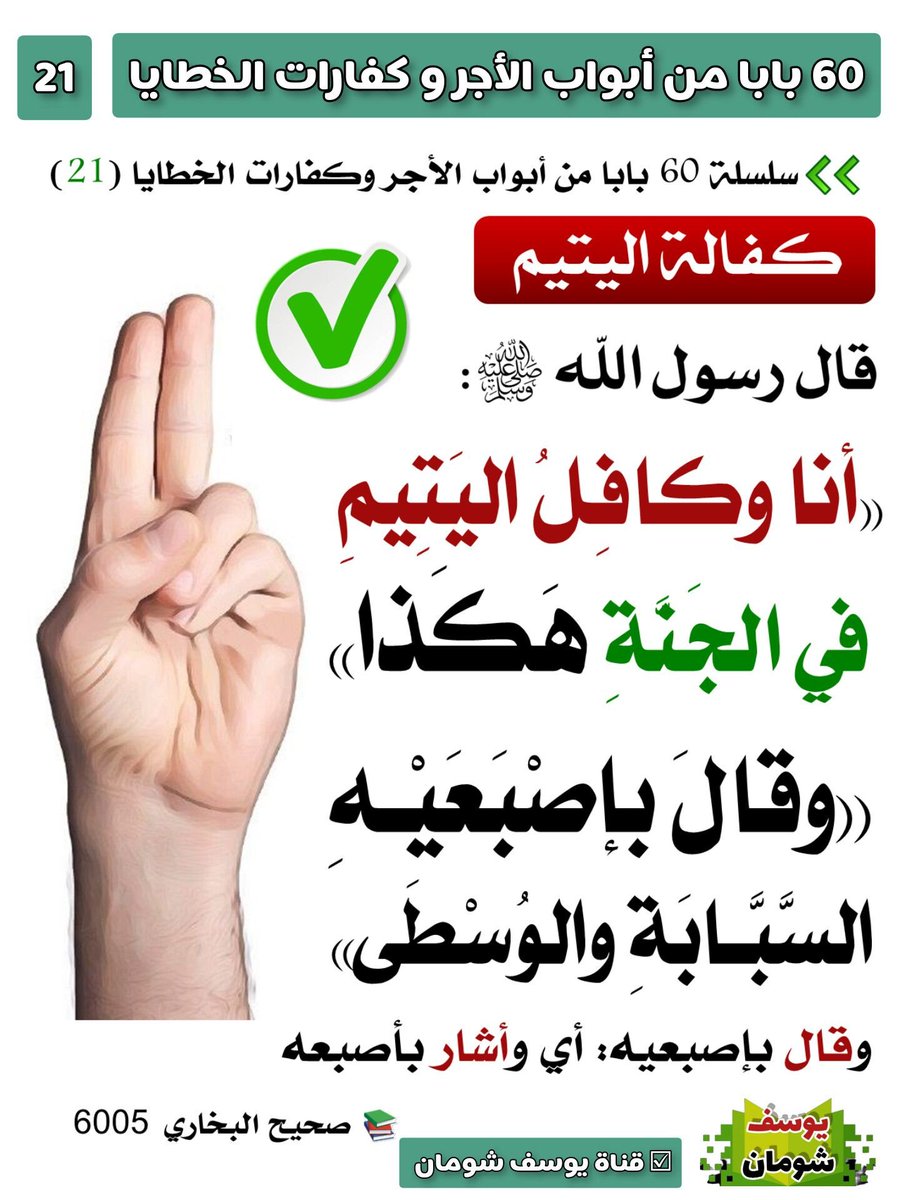 "أنا وكافل اليتيم كهاتين في الجنة"، وأشار بالسبابة والوسطى.