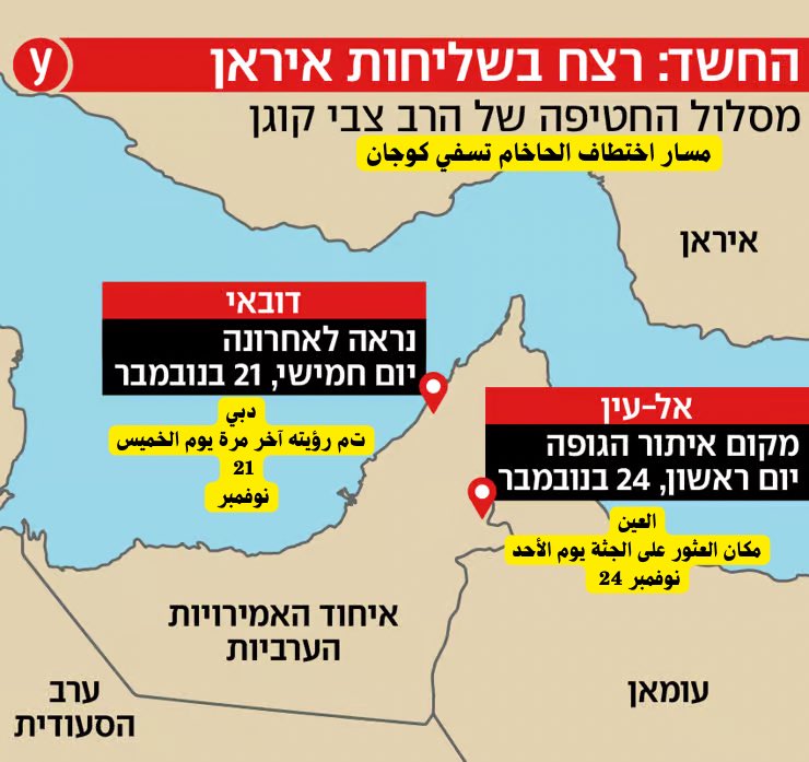 قبل قليل، أعلنت السلطات الإماراتية اعتقال مشتبهين بخطف وقتل الحاخام والجندي اليهودي تسفي كوجان.