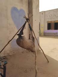 ✍️وهي عبارة عن 3 اعواد تنصب تربط من الأعلى في شكل هرم، يعلق عليها السعن لخض اللبن. x.com