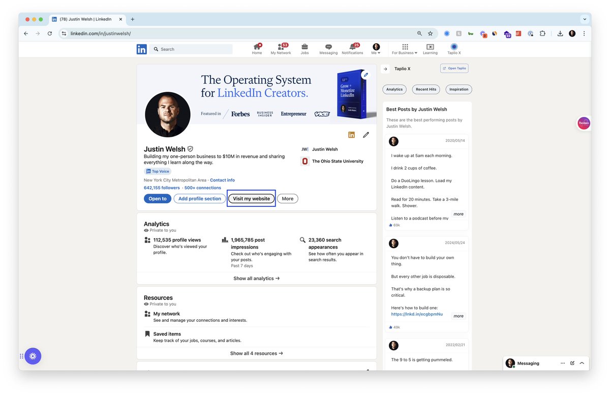 I drive at least 200 people to my website each day via the new LinkedIn custom profile button.
