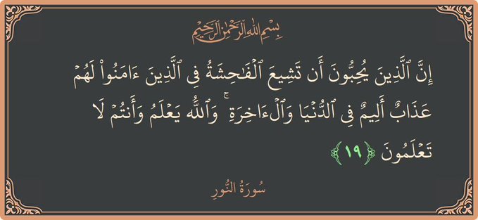 لذالك قال الله بعد أن برأها {إن الذين يحبون أن تشيع الفاحشة في الذين آمنوا لهم عذاب أليم في الدنيا والأخرة والله يعلم وأنتم لا تعلمون}