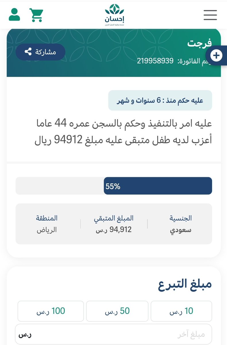 هنا حالة رسمية في منصة إحسان( فرجت)