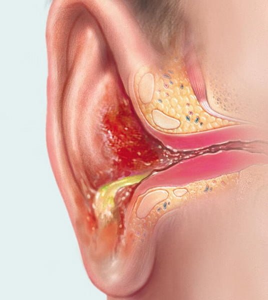 ألم شديد في الأذن، حكة، احمرار، إفرازات، صعوبة في سماع الأصوات. x.com