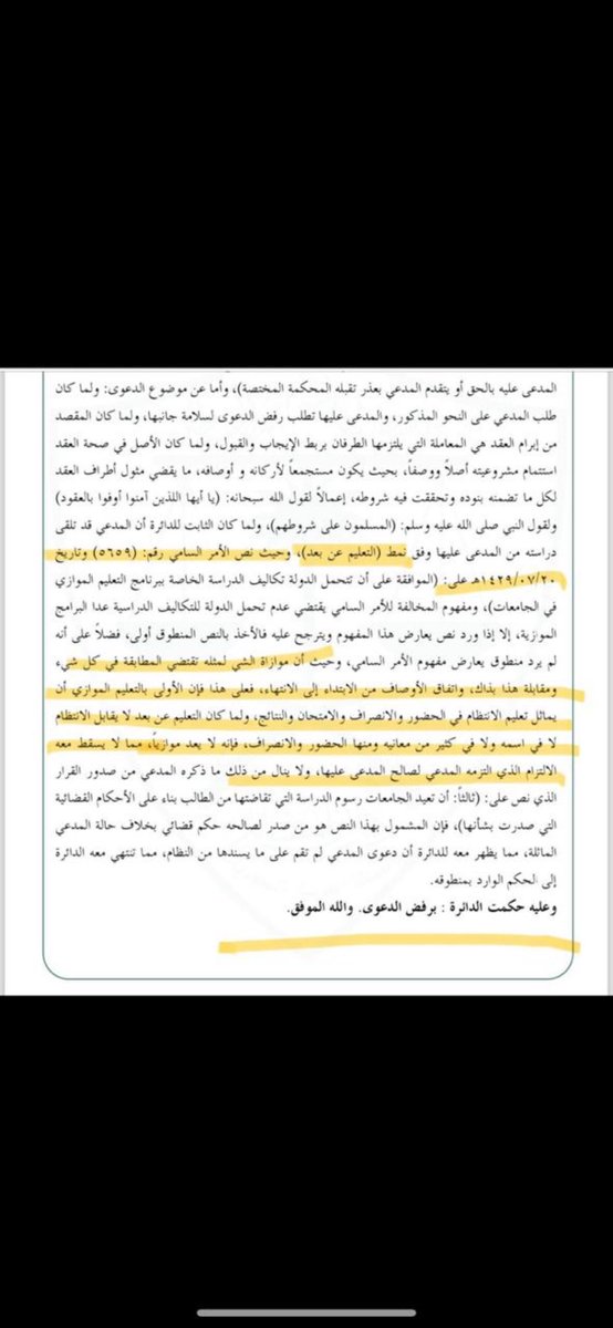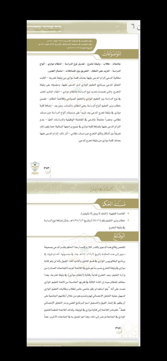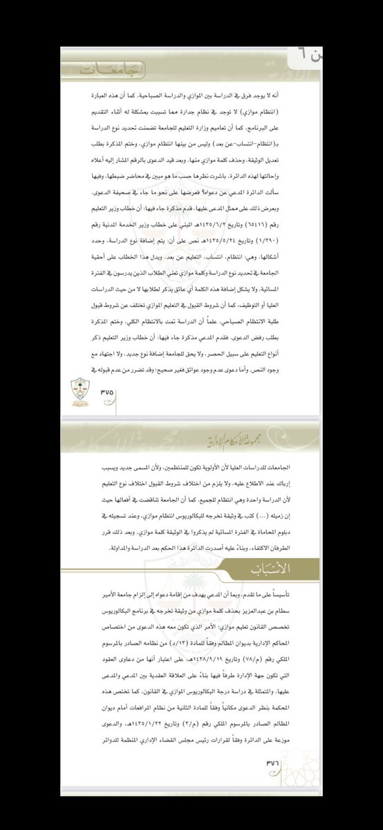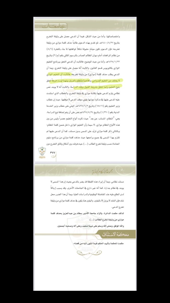 #حكم_قضائي يلزم الجامعة بحذف كلمة (موازي) باعتباره مطابقًا ومقابلاً للفظ (الانتظام) مع اختلاف ميعاد الاوقات الدراسية،