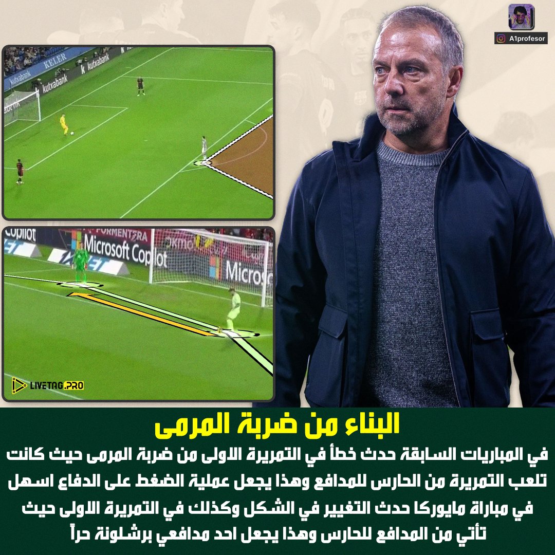 - بعد لعب كرة طويلة من الخصم يسترجعها برشلونة ويحاول ضرب المساحات المتوفرة مع تواجد الثلاثي الهجومي في مساحات كبيرة x.com