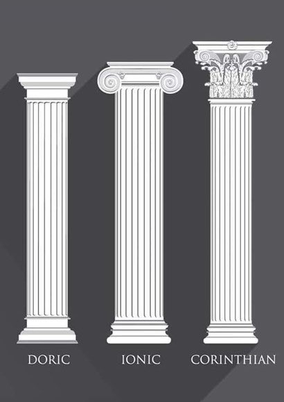 طبعاً الإغريق تميزوا بهذي الأعمدة وهي ( الكورنثي - الدوري - الأيوني ) الأعمدة التي استخدمت في المعبد هي الدوري من الخارج و الايوني من الداخل وكانت عبارة عن قطع مُجمعه فوق بعضها البعض x.com