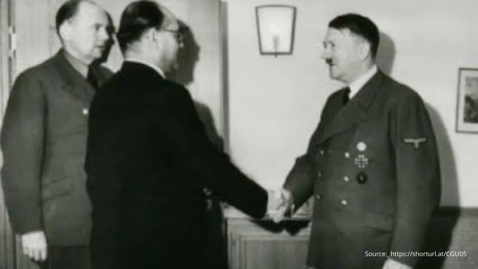 1. A picture dated 1936 shows Adolf Hitler shaking hands with young Harald Quandt x.com