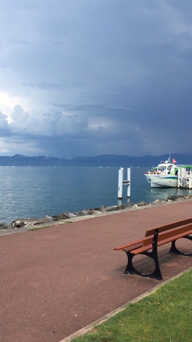 ثم اخذ جولة بالقارب في ارجاء بحيرة انسي 😍