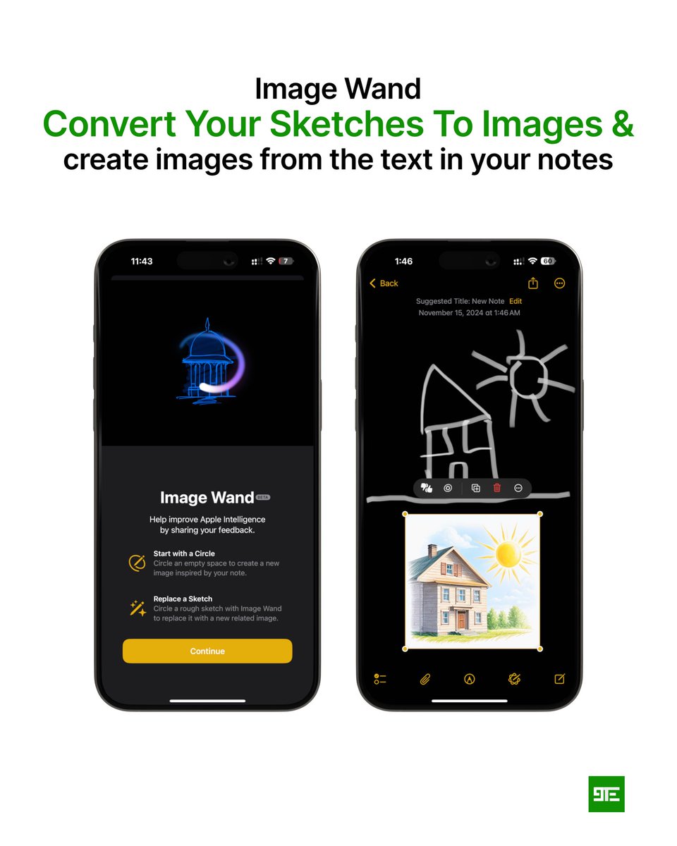 • ميزة Image wand: تقوم بتحويل الرسومات والملاحظات المكتوبة بخط اليد أو المطبوعة إلى صور في Notes x.com