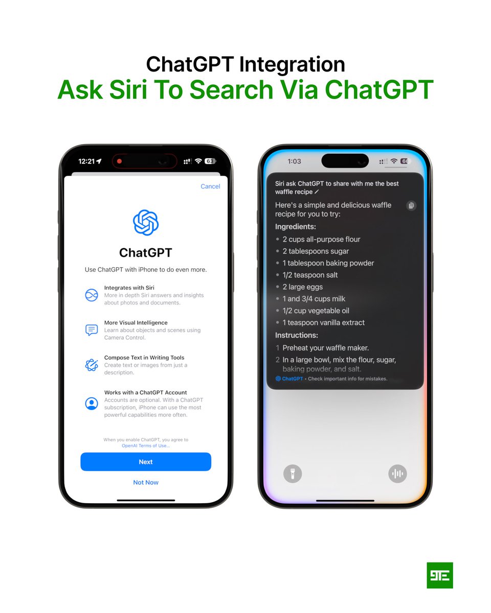 • يمكن الوصول إلى ChatGPT من OpenAI مباشرة من Siri أو أدوات الكتابة