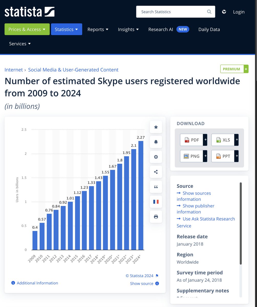 على الرغم من وصفها بأنها "ميتة" و"غير ذات صلة"، لا يزال لدى Skype 300 مليون مستخدم شهريًا بحلول عام 2024.