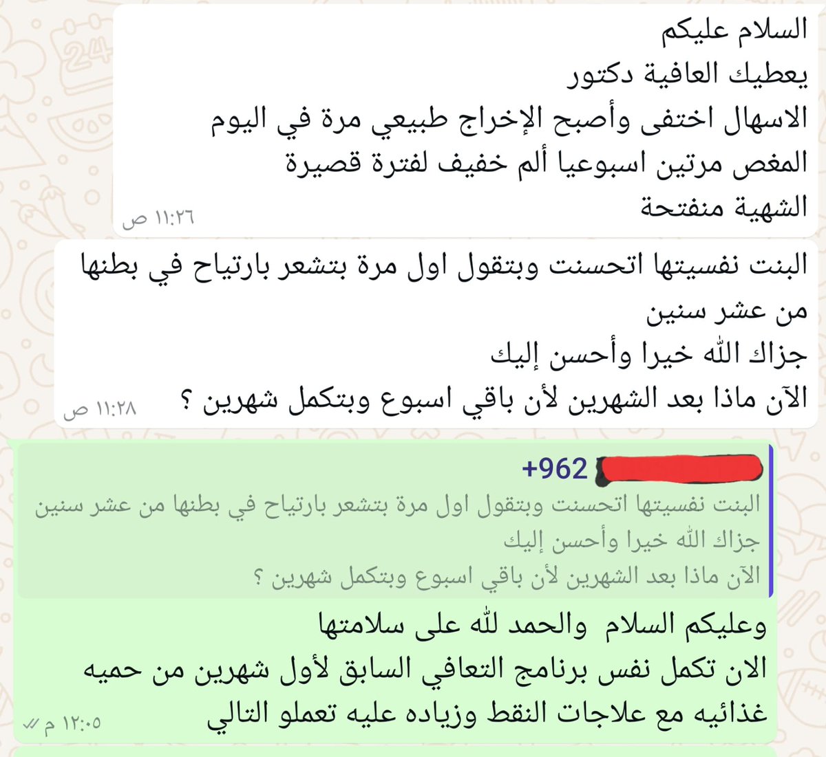 ارفق في الصور حالة بنت تعالجت من مشاكل القولون كرونز وتقرحات في القولون