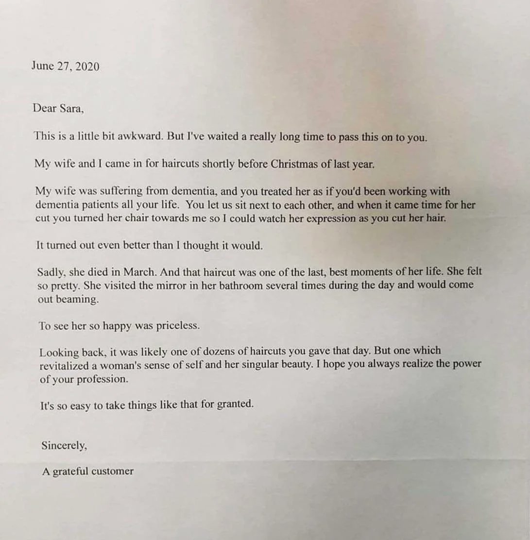 12. Dad is admiring a car he sees parked in a restaurant parking lot, it reminds him of his old car that he had to sell to to help raise kids. He's reminiscing and telling stories, then the daughter hands him the keys