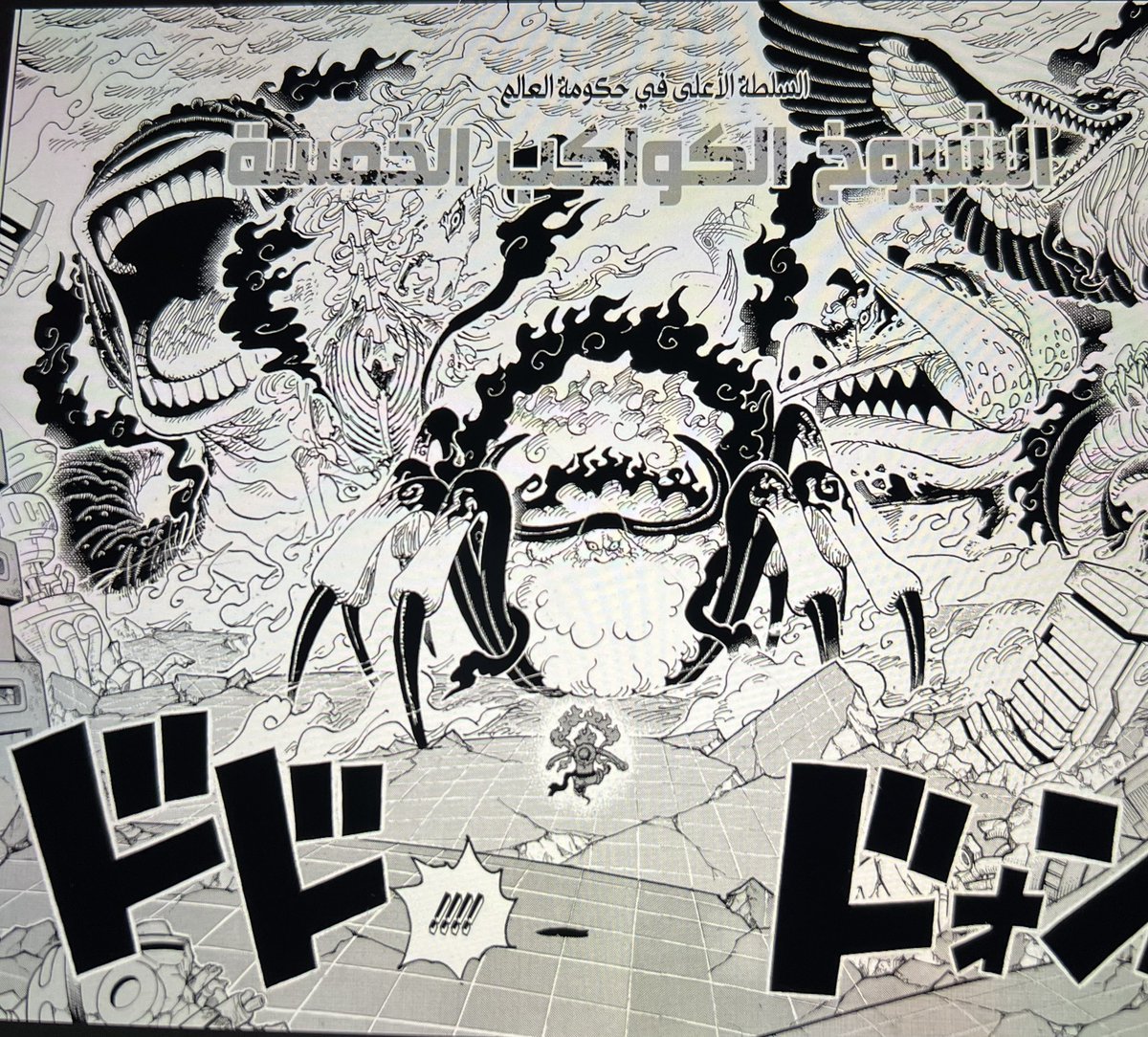 لخص الكاتب في فريم رائع جداً عن اهم الشخصيات ف القصة حالياً والتي سوف تكون محور القصة حتى النهاية، أثناء حديث فيجابانك ان مصير العالم بين يدي من يحصل على الون بيس ، رسم الكاتب هذه الشخصيات الرئيسية