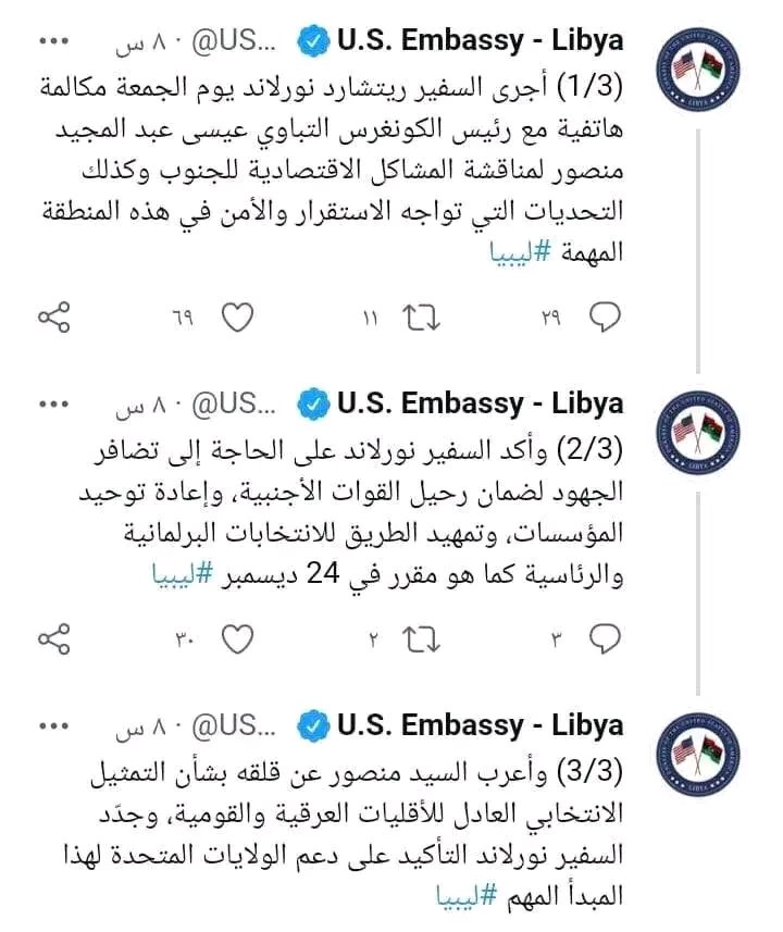 حفتر نظرته لاتتجاوز حلم السلطة بدعم غربي ، والأخوان لاتتجاوز نظرتهم كرسي بإسم الدين ، ودبيبة والحكومات السابقة لاتتجاوز نظرتهم نهب الميزانية ، والسفير الأمريكي يعرف أنهم بيادق وعملاء ولصوص وأغبياء