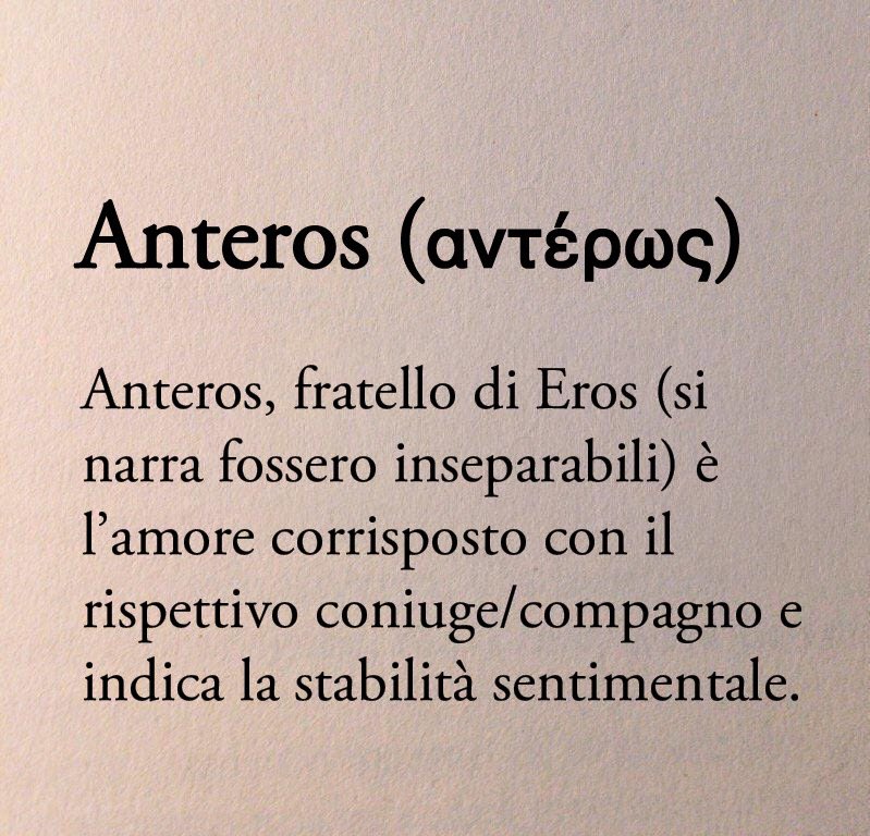 Anteros, fratello di Eros (si narra fossero inseparabili) è l’amore corrisposto con il rispettivo coniuge/compagno e indica la stabilità sentimentale. x.com
