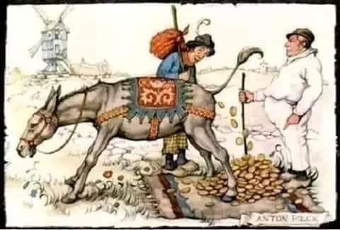 فنهق الحمار فتساقطت النقود من دبره
