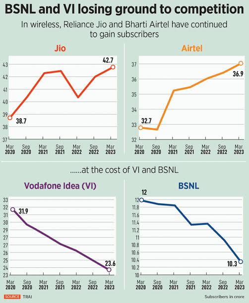 بحلول مارس 2017، كان قطاع الاتصالات في الهند قد اندمج من 12 مشغلاً إلى 4 مشغلين فعلياً.