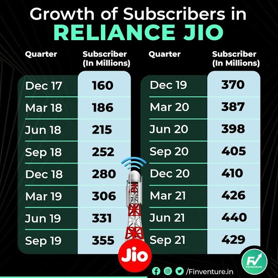 بحلول عام 2019، أصبحت شركة Jio أكبر شركة اتصالات في الهند بـ 331 مليون مشترك.