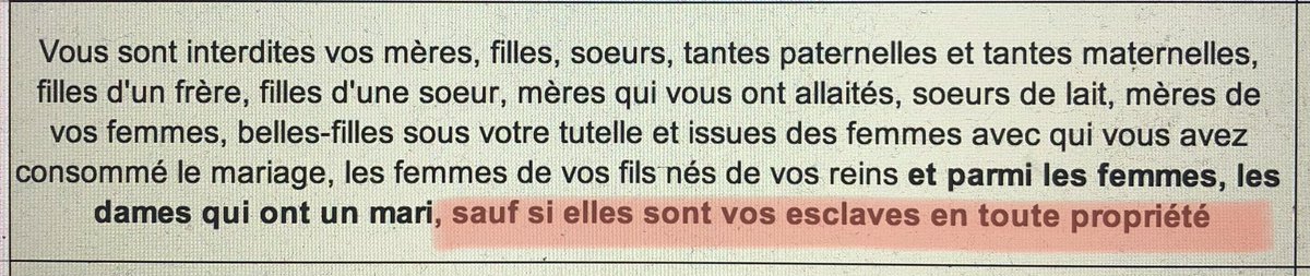 Encore un exemple ou le prophète est contre la libération des esclaves.