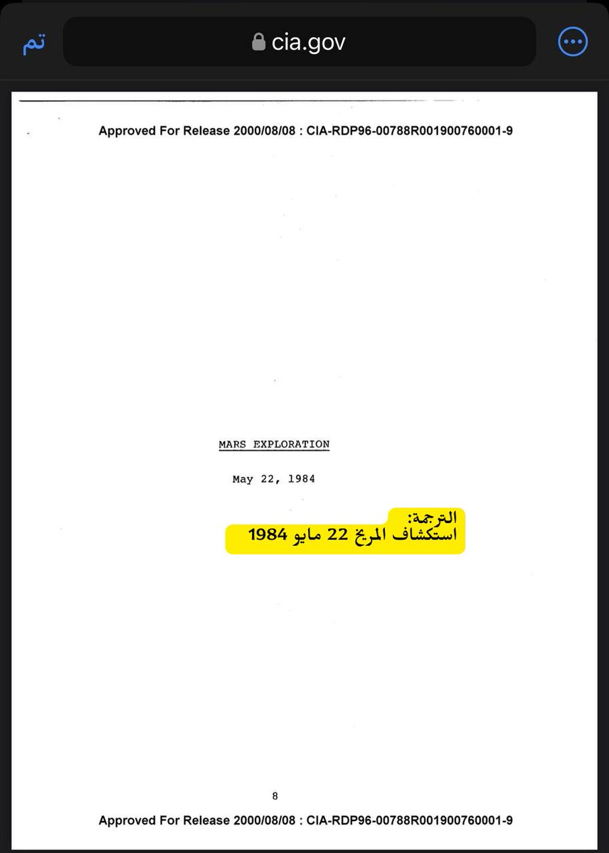 الخبر المنشور يتحدث عن وثيقة سرية بعنوان "استكشاف المريخ 22 مايو 1984".